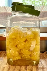 スダチシロップ漬けその後 26日に仕込んだスダチシロップ漬け。https://diy-square.cainz.com/announcements/0bn7kgfvo55aafjyなんと2日でもうこんなになってます〜😊めちゃくちゃシロップ上がってきてる!前回と変えたのは氷砂糖をロック→クリスタルにしたことと、スダチと氷砂糖を