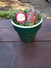 ■作品内容かわいい作家さんの鉢に、寄せ植えしました■工夫ポイントサンタさん・トナカイさんから出ている小さい多肉ちゃんの向きを考えながら上から、バランス見ながら、寄せました去年のクリスマス前に買った鉢なんです。今年のクリスマスには、間に合ったよ〜 ※以下カインズクリスマス部門のみ