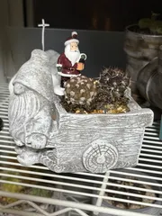 Xmasアレンジのアレンジ ■作品内容サンタさんが🎄に向けて■工夫ポイント雑貨をプラスしてみました※以下カインズクリスマス部門のみ入力■使用した商品