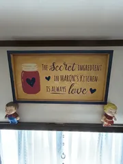 サインボードB&B 愛情が隠し味🩷 ■作品内容 B&Bのサインボードで私のキッチンに掛けようと思い作りました🩷 ■こだわりポイント カントリーキッチンなので 私のキッチン リビングに合うパイン 青 赤を使って色を決めました🩷可愛く❤️出来 キッチンの周りの物にも合って良い感じに出来上がりました😄