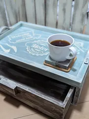 生クリームたーーーっぷりのコーヒーゼリー作りました🎶 一緒に行った母のタイルコースターと共に🤭