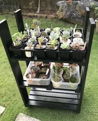 多肉が増えてきたので移動できる多肉棚を作製。台風🌀や雪❄️の日は玄関等に移動したいのでキャスターで移動しやすい様にあまり大きくないサイズに😅夏は遮光ネット、寒〜い冬は不織布を掛けられます。後で取り外し可能なプラスチックの波板の屋根を作る予定です。