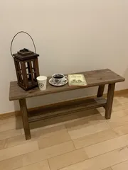 1日の終わりに❤️ お風呂上がりに、大好きなカフェ板のベンチに座ってコーヒーを飲みながら、絵本を広げます。 娘たちが帰ってくるとこのベンチは取り合いになるんですよ。