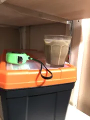 氷をたくさん入れてアイスコーヒー用の豆を濃く抽出したの🤗。バニラアイスと小豆缶をもりもり入れたコーヒーフロート作ろうとしたらアイスを食われちまったー🥺😭🥺。コーヒーを淹れる時はこの端材と雨樋受けで作ったドリッパースタンドで危険水位チャプチャプ防止を目視できるようにコントロールしてますよ。