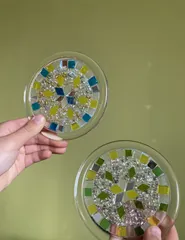 トルコガラスコースター🇹🇷 皆さんの投稿で気になっていた、トルコガラスのワークショップに参加してきました🇹🇷短時間で作れ、とっても気に入ったので、2個作りました😊キラキラ、ステキー💓ずっと眺めていられます💕また参加したいなー♪