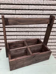 ガーデントレイ2個 ガーデントレイ2個バージョン WSのイベントの空きが有り、ガーデントレイを2個作成致しました。 一個目は撥水塗料のDブラウン二個目は自宅で昨年頂きました、「エコロジック・エッグシエル サンドグリーン 11」で塗りました。 ◎用途はガーデンニングより収納で 使用予定です