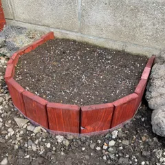 半円状花壇の設置 2月2日作品投稿の「半円状花壇設置の為の下準備」(リンク→ https://diy-square.cainz.com/announcements/vdeuyy9fef0a50iv )の続き、花壇完成です。この状態の後、掘り出した砂利混じりの土をフルイに掛けておきます。花壇仕切りの1×4材を並べてゆき