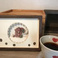 シャドーボックスのレッスン 仕上がり最新作 くまさんが珈琲淹れてる様子が あまりに 可愛くて お気に入り