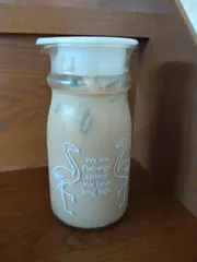 夏のコーヒー時間 オーレでもラテでもありません。ミルク出しコーヒーです カフェオーレに見えますが、ミルク(牛乳)にコーヒーをつけて出しています。 カス(粉)が浮かんでますね。 本当にミルクにつけています。作り方の写真が続きます。作っている所です。完成です。ミルクにつけてます。 本当は一晩でいいのですが、丸1日たってしまいました。コーヒー出し忘れました