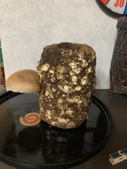 しいたけ栽培 R 2 その後 10日に 投稿した際 左側の小さな方が 4日経つとこんなに大きくなりました もうあとは、出てきまてませんこのコ が最後ですね😭 昨年リモートWSから今迄楽しませてもらいました 初めての経験で とても楽しかったです💖1/10の様子