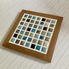 詰め放題などでついつい買ってしまうタイルと端材で鍋敷き作りました🍲🔳 裏には先日買ったgamiさんのステンシルを🖌️