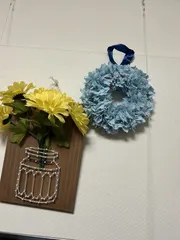 リース型の台座をいただいたのでブルー系の布で作りました🤩