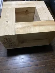 ワイン箱 ローテーブル キャスター付 ワイン箱、同じサイズの木箱を横にして、ローテーブルを作ってみました 4つの木箱は、キャスター付の台座↓の上に載っかり、固定されていますままずは、ワイン箱を4つに組んだ状態で、正方形の1辺を計測し、4つの木箱が載っかるように、上図のように、ロングビスでしっかりと固定します↑そして、四隅に、2