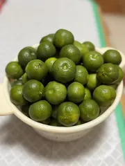 シークワーサー収穫しました 今年は沢山実りました🤗暗い早朝に収穫したので、まだ取り残しがありそうです😅とりあえずざるいっぱいになったので、これだけ獲りました🙌