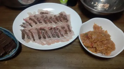 頂き物の鯛☺️ 鯛をいただいたのでお刺身となめろうを作りました🥰捌くのは主人が✨お刺身は皮を残して炙ってみました😊皮がキューと縮んで香ばしい匂いがするまで炙りました☺️なめろうは骨についた身がもったいないのでやってみましたあらはお義母さんが醤油味のあら煮にしてくれましたどれも美味しくいただきました😋 残り