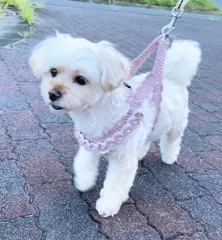 連日の猛暑で外でのDIY作業から逃避中🥵おかげで今年の夏は編む編む🧶夏に冬用毛糸はいくらクーラーかけていても気が乗らないのでコットン糸で色々編みました✨写真も撮らず(忘れてた)に殆どあげちゃったけど、色々編んでてハーネスもイケるかも?! と現在使用中のハーネスの形状参考にしながら初挑戦(๑•̀ㅂ•́