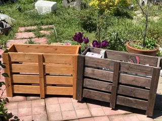 昨日新たに作ってきた脚付きプランターカバー2個。以前作ったのと同じくスタッキングして使います😊片方のボックスの脚部分を上から1センチほどカットするだけでしっかりとはまり込みます。長さがあるものも楽々収納。ザックリとじゃないと面倒っていう人向きかな。レシプロソーのように長い工具を刃を装着したままザック