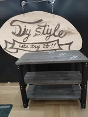 キャスター付きシューズラック👠 大雨の日のWWS、午前の部😊。キャスター付きシューズラックを作りました😊。今日はいつもにも増して脚の垂木の4センチ側からの貫通穴が真っ直ぐいなかくて苦戦しましたが、なんとか完成‼️ステンシルはシンプル目にしてみました😅。シューズラックですが、ゴチャゴチャしがちなワンコ🐶グッズの収納棚として使う予定で