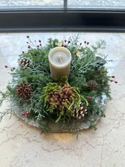 クリスマスのアレンジ🎄 今回は初めてのお皿のアレンジでした❣️ どうなる事かと思いましたが、キャンドルや花材のお陰でクリスマスっぽくなりました(??)😁 楽しいꕀ⋆♥️