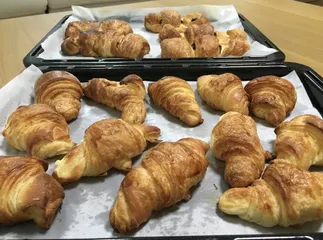 サクサク!! ■作品内容クロワッサン■こだわりポイント何回も生地を重ねては寝かせを繰り返し、一日かけて作ったクロワッサンは格別です。普通のクロワッサンとチョコ入りのクロワッサンを作りました。