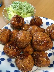 食べ応え抜群です! ■作品内容肉団子 レンコン入り■こだわりポイント鶏肉と豚肉のひき肉を使い、レンコンを細かくみじん切りにして練り合わせ、揚げた後に甘酢餡を絡ませて出来上がり!とても食べ応えがあり、家族大満足です!