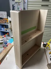 夏のコーヒー時間【製作終わってホッとひと息】 キャスター付壁風シェルフを作ってきました。ちょっとアレンジ 家に帰ってきてから少し手を加えてみました。本当は窓付けたかったんですが。 棚のサイズは、前日投稿してた方のを参考に、2リッターのペットボトルが置けるようしました。 キャスターは、買い足して回転するキャスターを使いました。