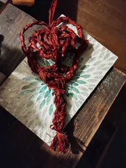 先日花楽の里で買って来たラフィアを三つ編みしてハートのリースを作りました✨初めてなのでどう作るか考えた結果三つ編みして作りました✨