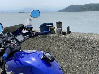 「夏のコーヒー時間 海辺の1人コーヒー♪」 群馬からバイクで一日中走って福岡へ。わずかな荷物だけを荷台にくくりつけ、でも珈琲セットだけはしっかり積んで。翌日、海辺で一人コーヒーを楽しむ。翌日はまた丸一日バイクで走って帰ってきました。男のロマン、てやつですかね💕 還暦記念に誕生日を学生時代を過ごした福岡で迎えた旦那様。何を想っていたの