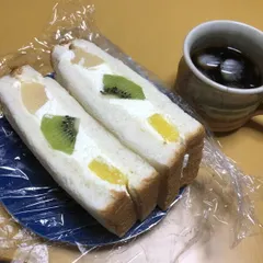夏のコーヒー時間【フルーツサンド】 ウインナーコーヒーを作った時、大量の生クリームが余ることは予想できたので、「残りを何に使うか?」ということになりました。フルーツの缶詰があったので、フルーツサンドを作ってみました。 桃とパイナップルは缶詰、キウイは生のものです。普段、この手の食べ物は、まったく食べないのですが、ラップに包ん