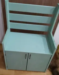 ベランダ収納庫 先日、作ってきました。扉の所がうまくいかず直しました。帰って来てから気になる部分があり、もう一度、なおして完成しました。😆なおすために今は室内にありますが、外で使う予定です。
