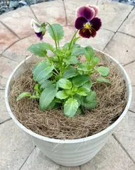 小輪ビオラビオレッタのルーキーズアンティークな花色なので、アンティークな鉢におひとり様で植えました😊