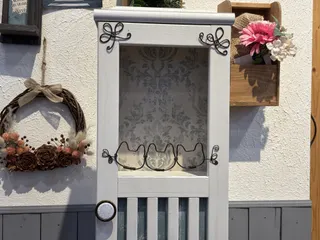 レトロなスリムキャビネット♪ 前橋小島田店オリジナル、レトロなスリムキャビネットを作ってきました(^^) 久しぶりのWS、シニアな目も追い打ちをかけて大変でしたが、とっても素敵な作品に仕上がって、感謝感激です❣️シックな柄のリメイクシートと格子から見えるブルーがなんとも言えない素敵感🥰これはもう一つ作りたくなりますね。