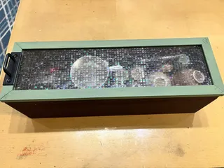 先日捨てられかけていた中国茶器🫖きちんと収納できる箱を作りました。 イメージは昔々に見たことのある、一人用の茶器を持ち運び出来る箱。長細くて蓋がスライドするもの。 とりあえずこんな感じになりました。 蓋はアクリル板で、スライドできますたっぷり収納可能ですアクリル板を中に