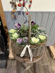 可愛いカゴの寄せ植え ミニ葉牡丹🧺