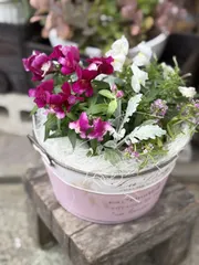 昨日の寄せ植え教室の、妻の作品💐