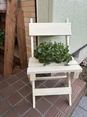 ミニガーデンチェア その後 保護剤をしっかりぬりぬりしてお外デビューしました!迷っていたステンシルはまた次回の課題にとっておきます😅