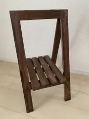 枠のあるフラワースタンドをワークショップでつくりました。 本来は壁掛けではないのですが、置き場もないので一文字を購入。100円位。2本。↑その前にネジが目立つのでクミモクの黒い木ネジに変えました。一文字は元のネジを外してつけたのですが、左側は端につけると壁につけられないためずらす。ネジが2
