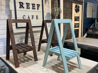 2段ディスプレイシェルフ 午後からは2段ディスプレイシェルフを作りました。2段続きです。 こちらも簡単ですよーと言われましたが、またもや板の反り返りもあり、力技でのビス留めで疲れましたが楽しかったです。 そして何気に2色ですと言われ、可愛いウォルナットしか考えていなかったので狼狽えましたが、そこは家の残り