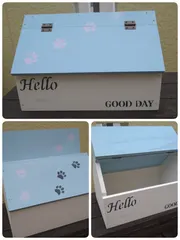 おうち型小物入れ 今回も楽しく参加して来ました😊用意して頂いた飾りパーツは持ち帰り、ステンシルをポンポンと☺️これでテーブル上のごちゃごちゃしたものを隠せます😅