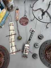 ゆらゆら雑貨(ボトルキャップのリメイク😆) ゆらゆら雑貨完成👏 色んな材料で作りましたゼムクリップ、缶蓋、ペットボトルキャップを端材、錆釘、リボン、ワイヤーたくさん使いました😊 実はペットボトルキャップ今回可愛くリメイク出来たので、もう1つ違う種類の雑貨も完成しました😊後日投稿します(⁎ᴗ͈ˬᴗ͈⁎)