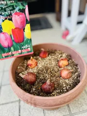 早々とチューリップ 早くも売ってたので球根🌷かってきて早速植えました🥰まだ、後でも咲くのですが買ってきたらすぐにやりたくなる私なので、旅行から帰った荷物も程々にして庭作業しました🤣✨