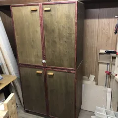 乾燥用キャビネット 「乾燥用のラック」を作ったものの、作業場では木粉が舞っているので、塗装した作品を乾かしている最中に丸ノコを使うといったことができません。乾燥待ちになります。これは時間のロスです。というわけで、密閉型の乾燥用のキャビネットを作ることにしました。 ■完成後■底板もカウントに含めて、棚が16段あ