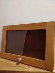 こちらのカフェ風ショーケースは先のブラックとは打って変わってメープルのノーマルVerです😊特養に入所している義母のお湯のみ等を収納するのに作りました😊が、このご時世、なかなか面会、差し入れが叶わず、届けに行かれません😢