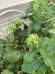 今朝の庭から 今朝雨上がりの庭でアナベルの二番花の花❓つぼみ❓が出来てました😊まだまだ暑いのね🫠