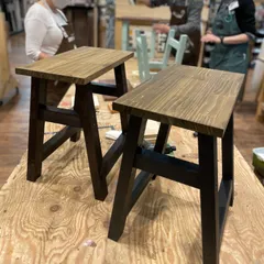ちょっと腰掛けるのに最適なミシン椅子!ベランダで大活躍🌟 ワークショップでミシン椅子を作りました💓ベランダの腰掛け用として置いています! タバコを吸うためにベランダに出た友人に「椅子いいね!ちょうどいい大きさ!」褒められて嬉しかったです✨ 椅子の脚を斜めに取り付けるのが難しいのですが、ワークショップでは斜めにカットされた木材が用意されて