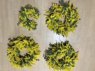 ミモザの黄色は可愛いですね🤩 リースにするのは難しそうですけど… 綺麗で素敵ですね🥰