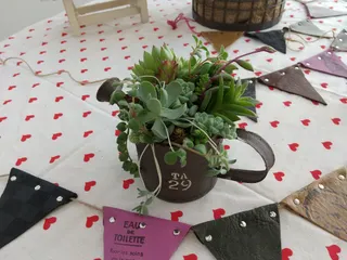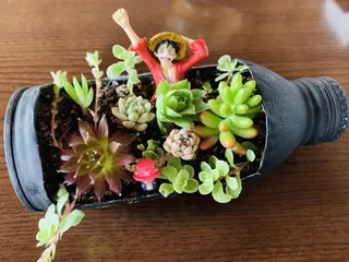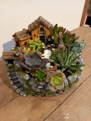 無事終了しました。作品としての投稿が間違っていたらすみません。 小中学校の生徒6人の作品です個性豊かな作品となりました。指導員の先生は 両先生とも、植物の管理が出来ない方々ですので、(去年の多肉寄せ植えの器は、水で満たされて腐っていました……こんなこと書きたくないけど……)&nb