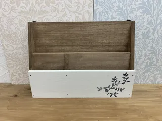 レターラック 今回は、レターラック作りました(^^)いつもは最後にペイントだけど…はじめに色塗り♡で細かな所も綺麗に仕上がりました〜ウォルナットに白・ステンシルはブルーで仕上げました(^o^)満足♡
