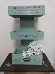 テーブルシェルフ💚✨ 突然の電話『元気にしてる〜』、2年ぶりで聞く懐かしい声…近いうちに逢おうねって約束してスマホを置く。いつがいいだろうと予定の空いている日を探しているうちに、そうだもうじき誕生日…花が大好きな彼女のためにさっそくステンシル、よおぅし、ささやかだけど今の私はこんなことしてるよって知ってもらうためにWSで