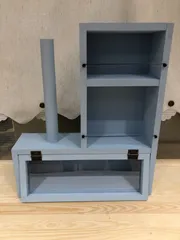 ペーパースタンド付き収納棚 今日、ペーパースタンド付き収納棚を作りました。😊色は、アクアです。‼️ 裏板が合わずに→少しカットして頂き、😅 何故が測り方を間違え?穴開けがズレてしまい。😭→穴埋めをして頂き、😅 ワイヤーは、切れてしまい。→短く巻き😅 時間オーバーでした。😅大変な一日でした